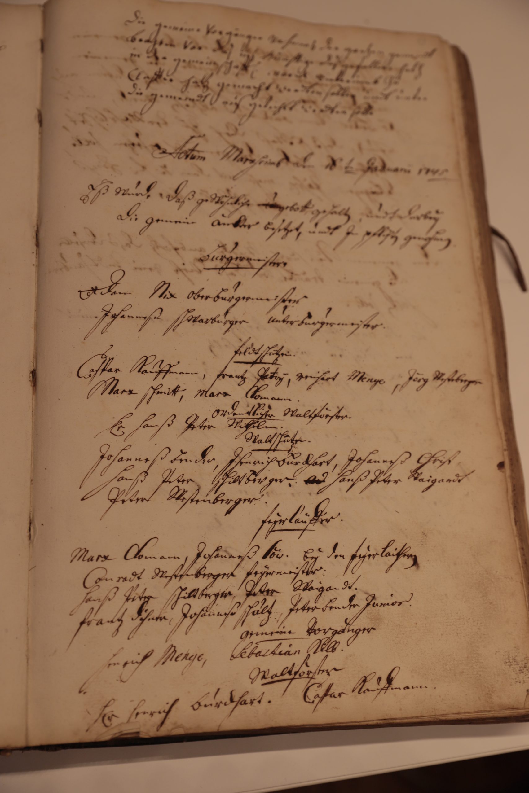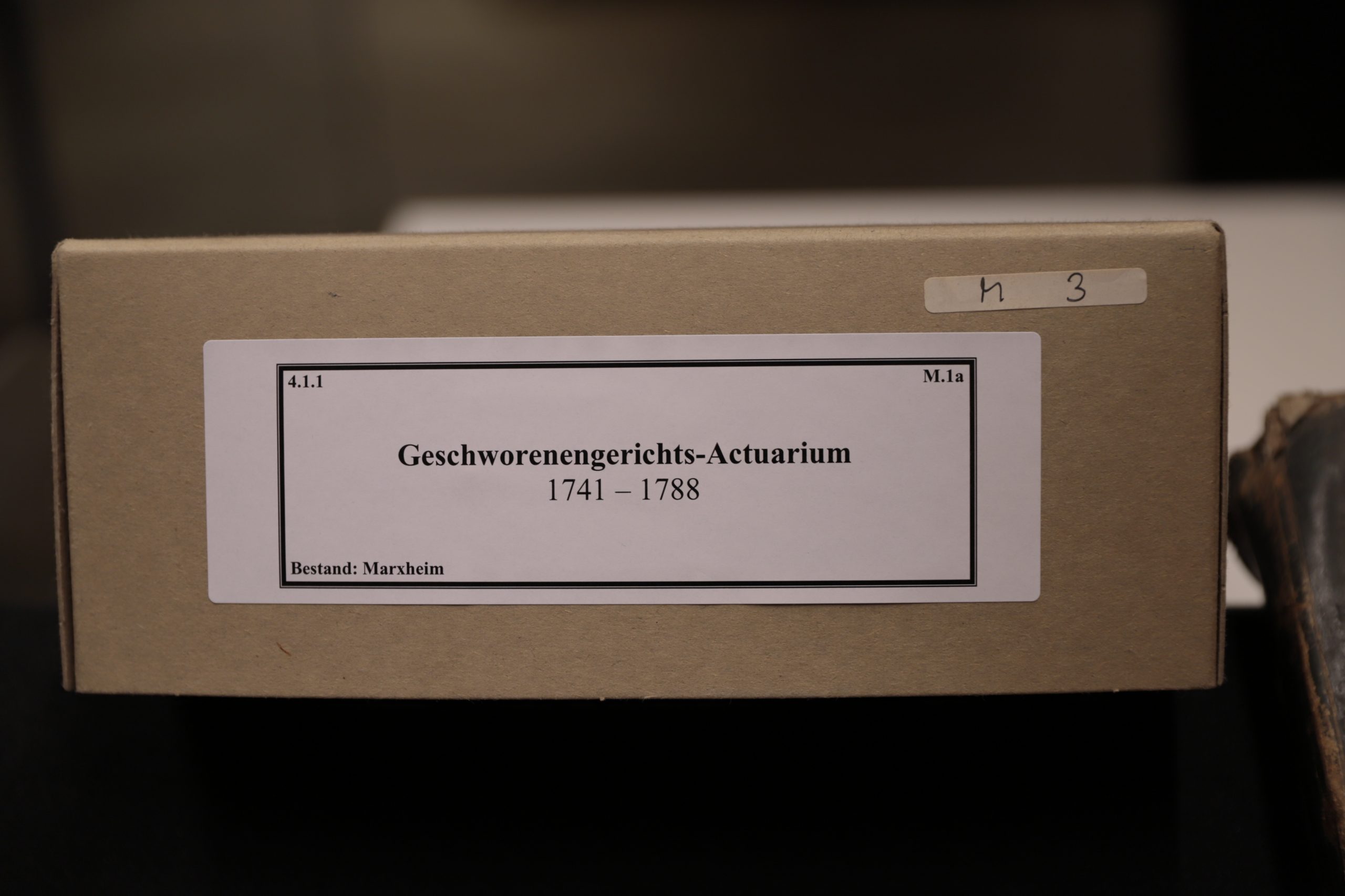 Am 15. Januar 2026 haben sich einige Mitglieder des Marxheimer Heimat und Geschichtsverein im Stadtarchiv Hofheim mit der Stadtarchivarin Frau Pissors getroffen, um das Geschworenengerichts-Actuarium einzusehen. Dieses Dokument betrifft den Zeitraum von 1741 bis 1788.